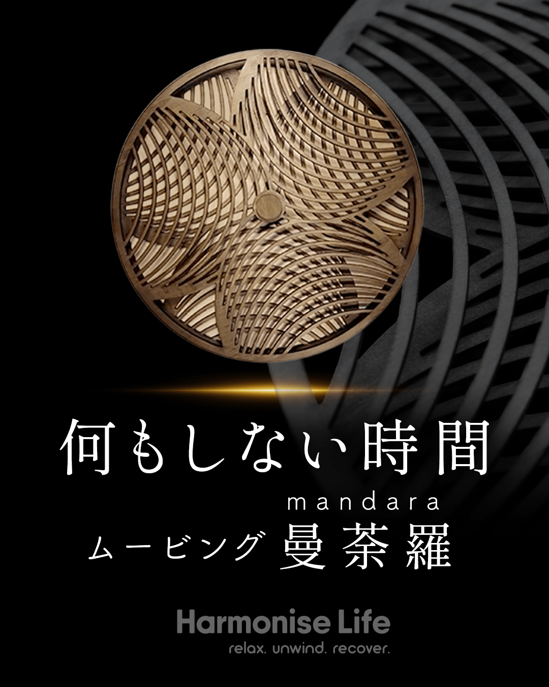 ゆっくりと静かに回り続けるムービング曼荼羅。その優雅な動きは、自然と呼吸を整え、頭の中のノイズをすっと取り払ってくれます。眺めているだけで、心に静けさが広がり“見る瞑想”のようなひとときを味わえます。